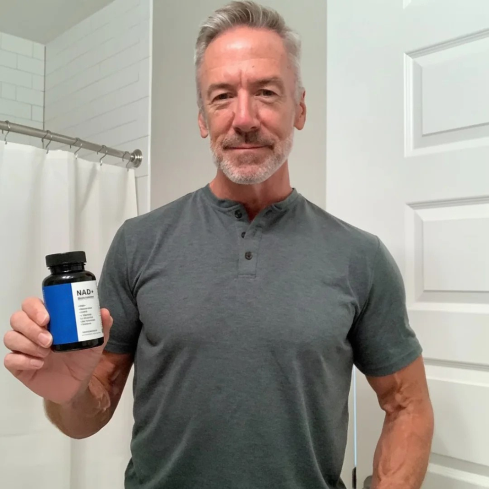 It features liposomal NAD+, CoQ10, and L-Carnitine, plus nitric oxide boosters and adaptogens like Maca and Ashwagandha—all in one high-performance formula.